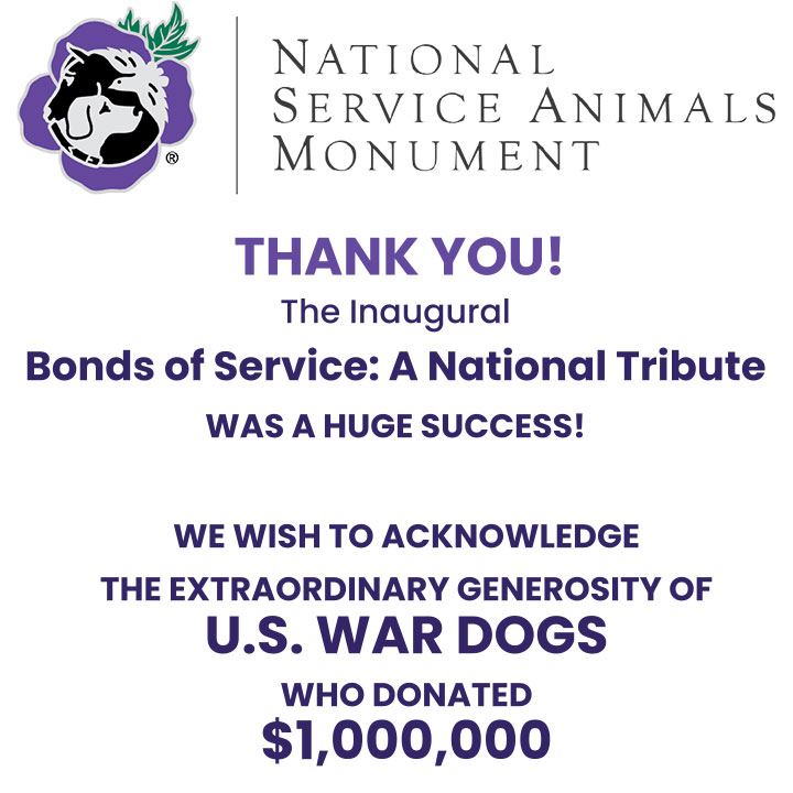 NSAM aspires to highlight our nation’s collective consciousness of service and sacrifice and to elevate understanding of the extraordinary ways in which animals and humans serve one another under the most challenging and extraordinary circumstances. Through this recognition, the monument contributes meaningfully to the national conversation about American values, remembrance, and the meaning of service.